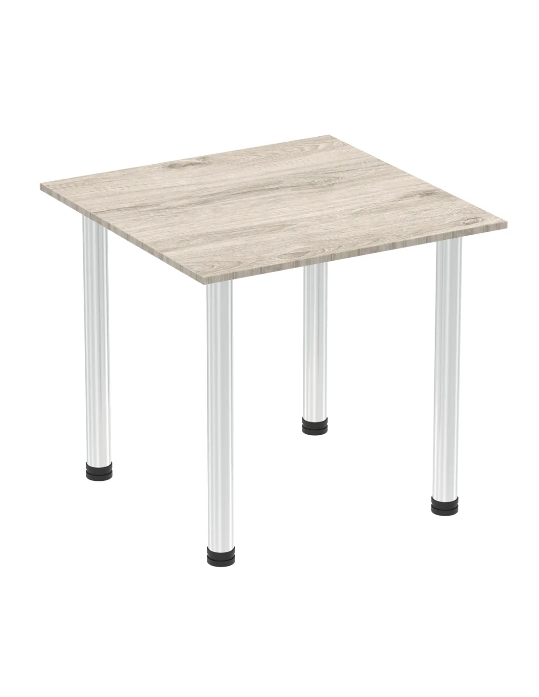 DynamicImpulse 800mm Square Writing Desk Table Grey Oak Top Chrome Post Leg