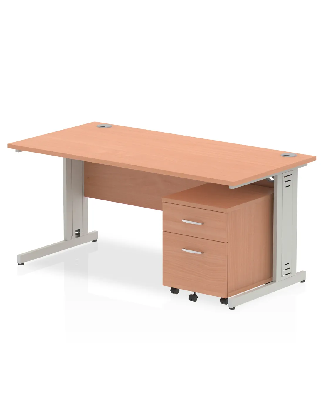 Dynamic Impulse 1600 x 800mm Straight Office Desk Beech Top Cable Managed 2 Drawer Mobile Pedestal