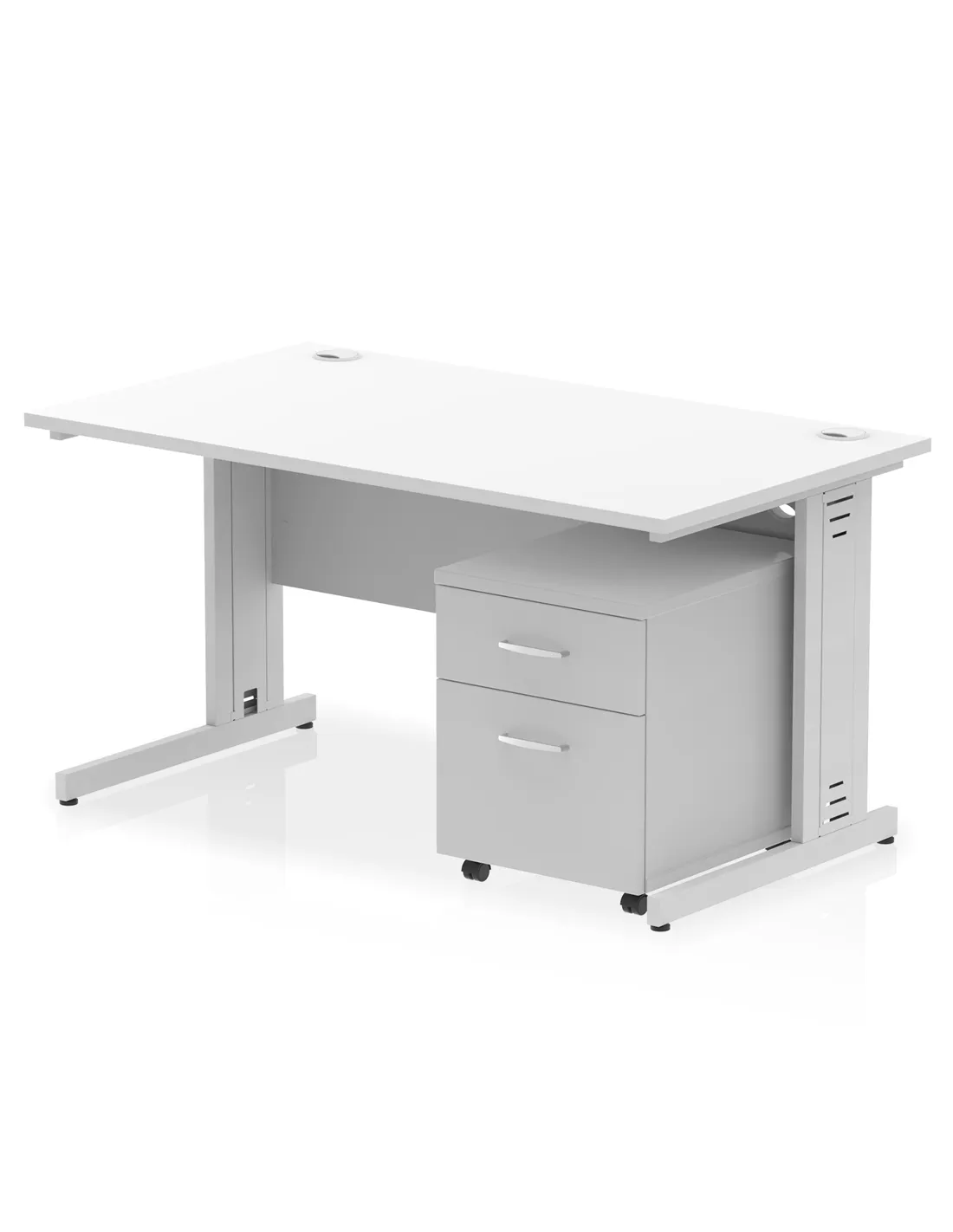 Dynamic Impulse 1400 x 800mm Straight Office Desk White Top Cable Managed 2 Drawer Mobile Pedestal