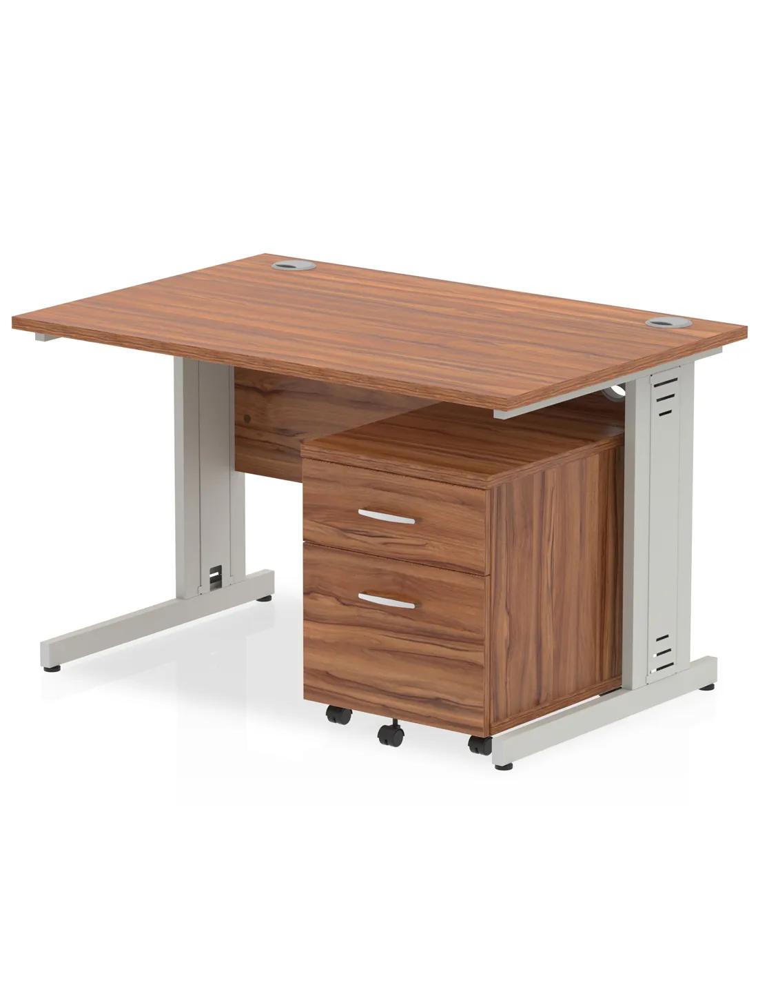 Dynamic Impulse 1200 x 800mm Straight Office Desk Walnut Top Cable Managed 2 Drawer Mobile Pedestal