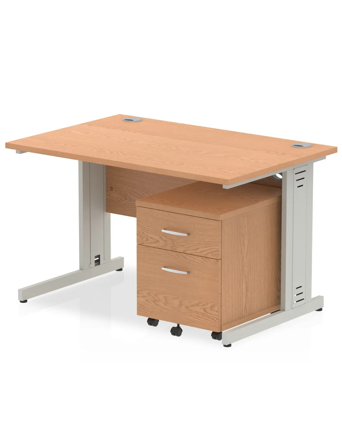 Dynamic Impulse 1200 x 800mm Straight Office Desk Oak Top Cable Managed 2 Drawer Mobile Pedestal