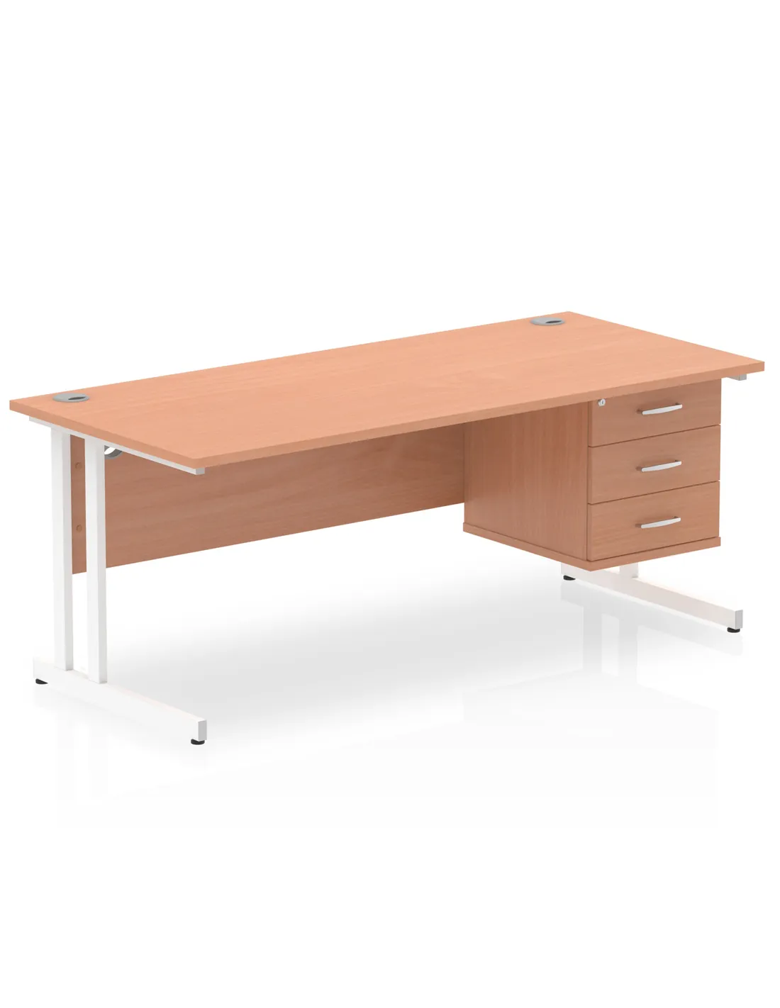 Dynamic Impulse 1800 x 800mm Straight Office Desk Beech Top Cantilever 1 x 3 Drawer Fixed Pedestal