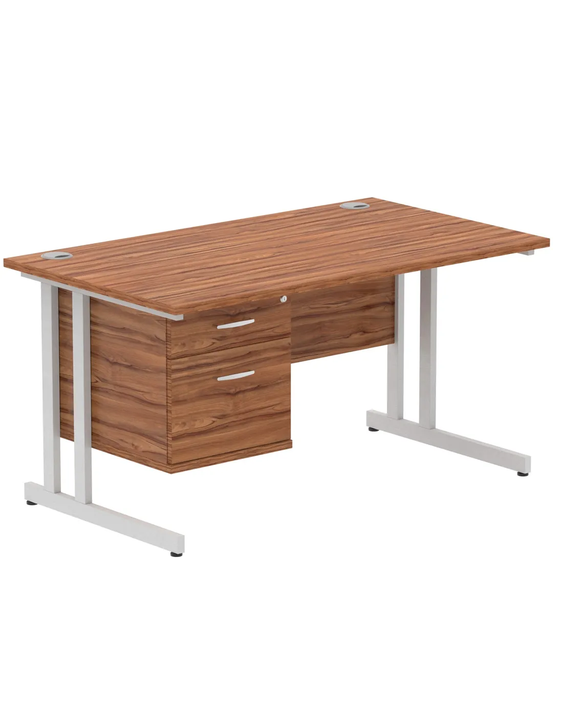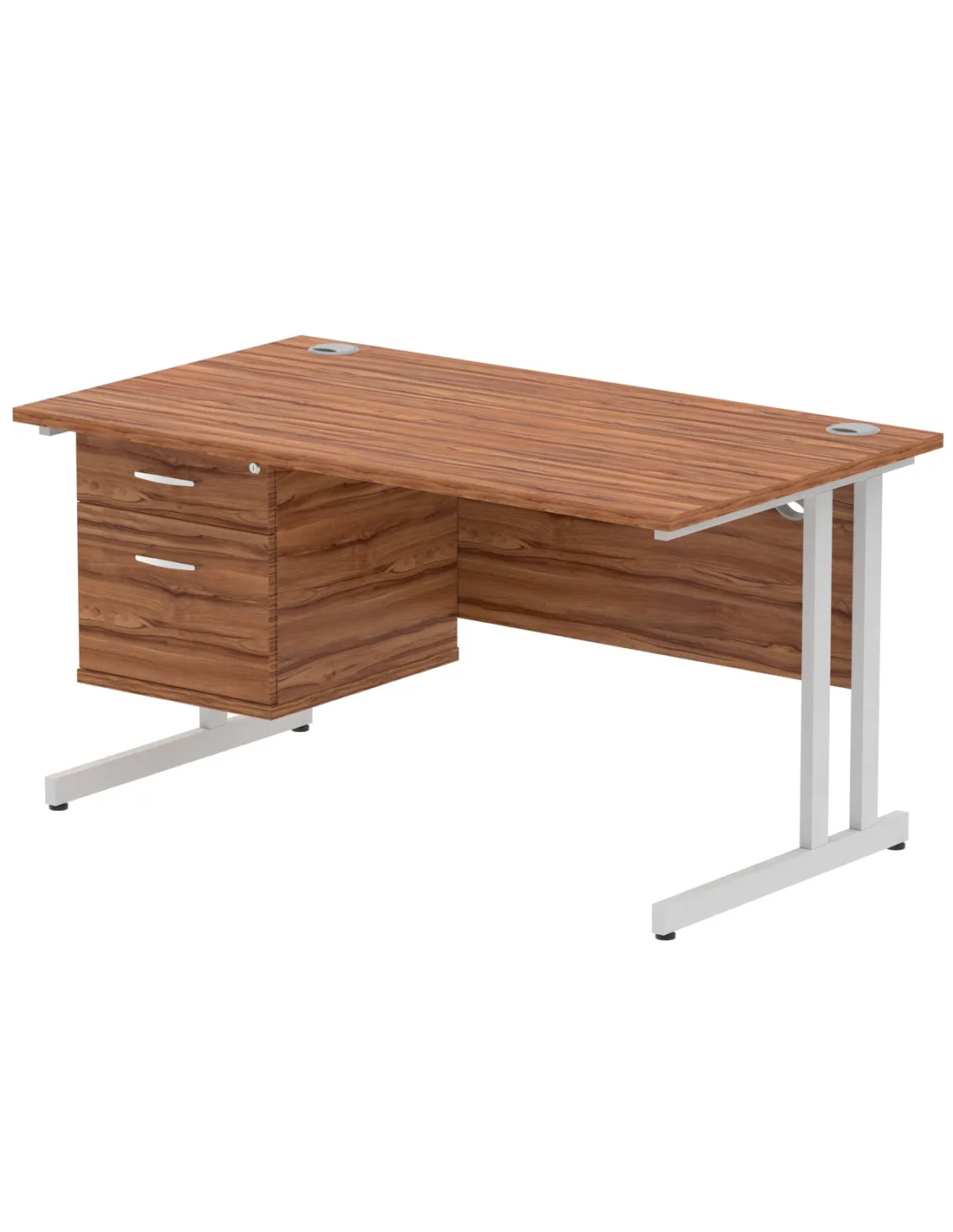 Dynamic Impulse 1400 x 800mm Straight Office Desk Walnut Top Cantilever 1 x 2 Drawer Fixed Pedestal