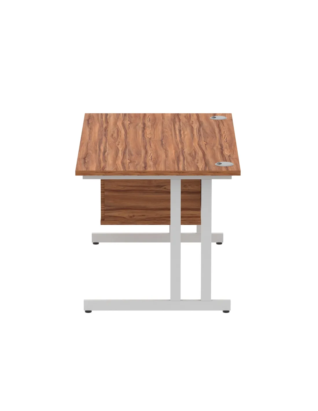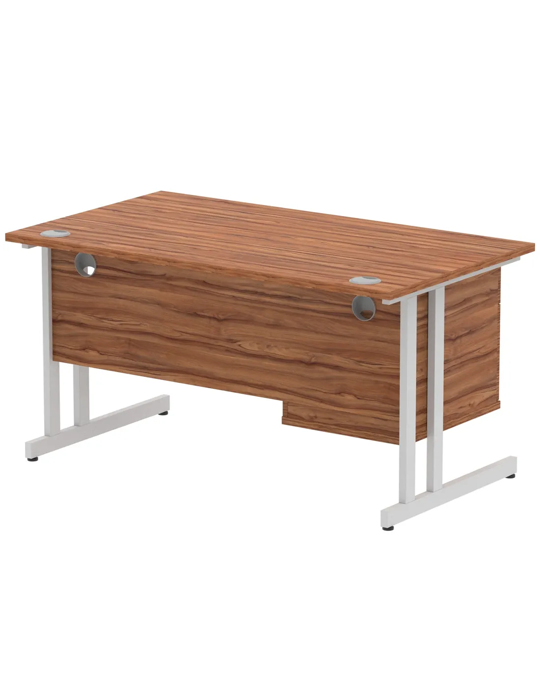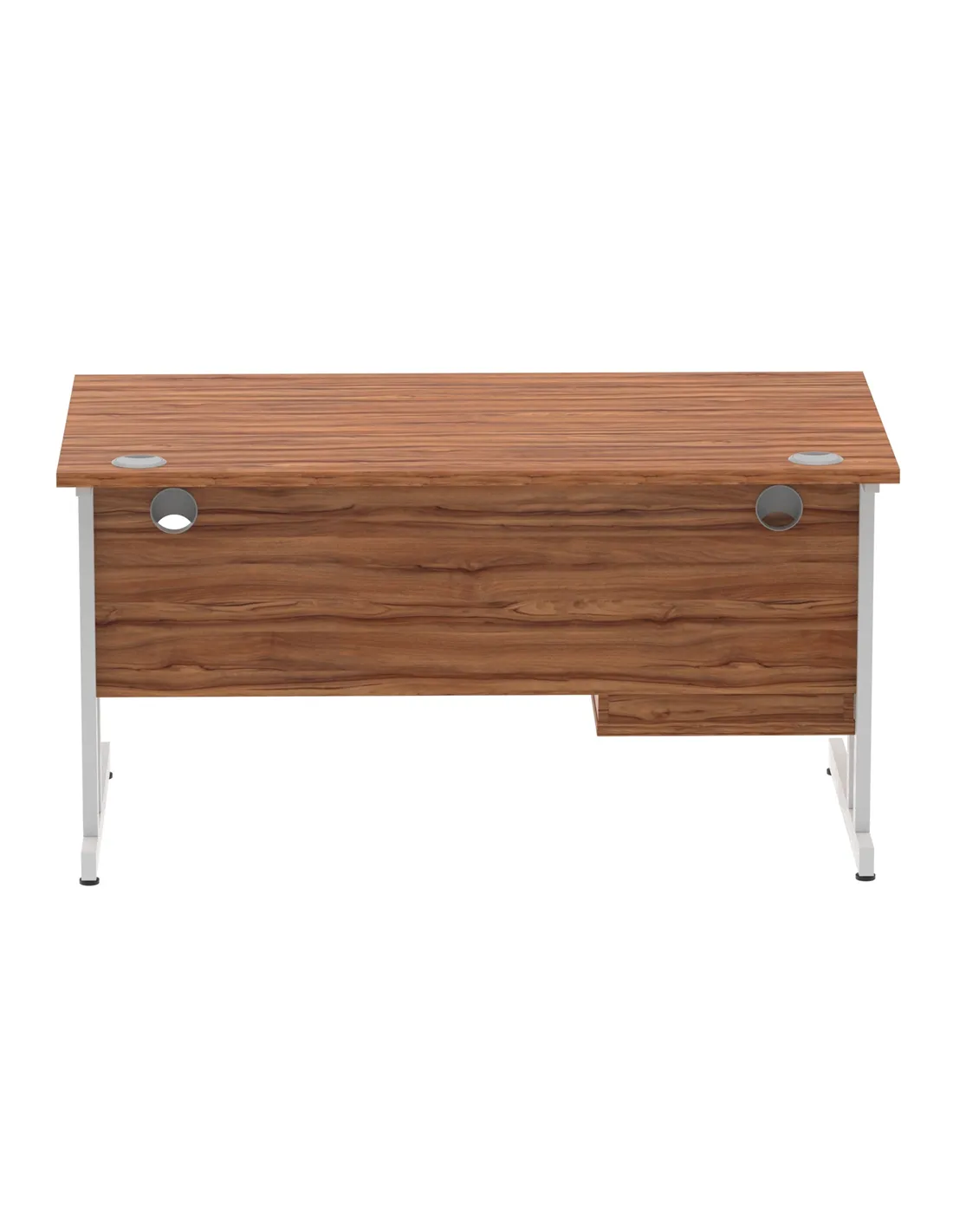- Crafted from high-quality MFC with a 25mm thick walnut melamine top, this desk is designed for durability and daily use. The silver-coated double strut cantilever legs and steel-to-steel fixings enhance stability, supporting up to 135kg. The heat-resistant surface protects against everyday wear, ensuring long-lasting performance.