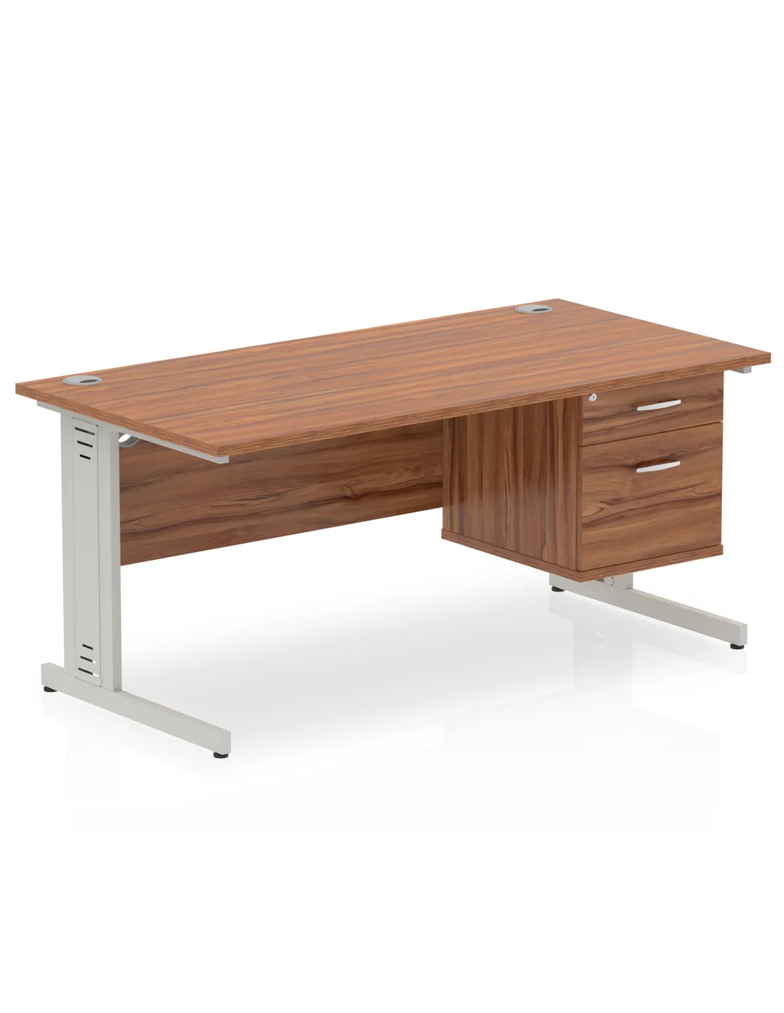 - This versatile desk is perfect for home offices, corporate workspaces, and study areas. Its straight walnut top and cable management system ensure a tidy, professional environment, while the fixed pedestal with two drawers offers practical storage for documents and office essentials. According to customer feedback, it blends seamlessly into both modern and traditional interiors, enhancing productivity and organisation.