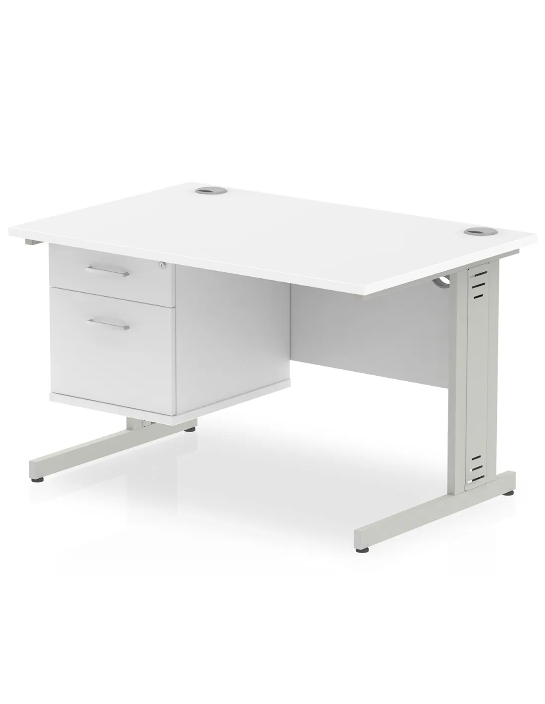 Dynamic Impulse 1200 x 800mm Straight Office Desk White Top Cable Managed 1 x 2 Drawer Fixed Pedestal