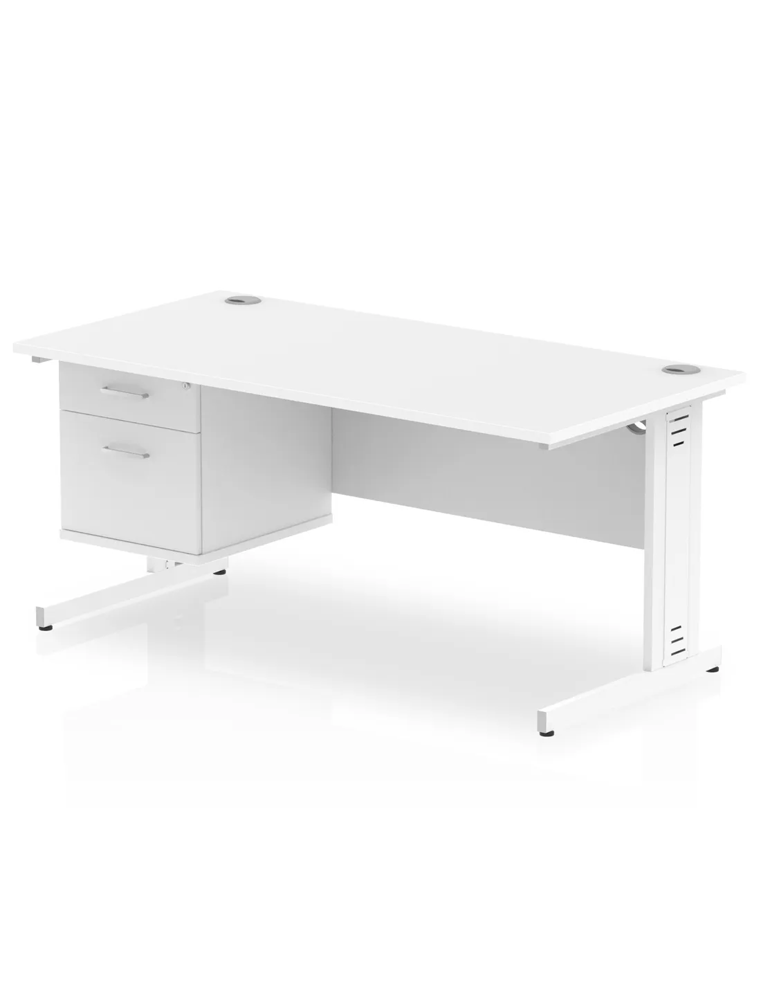 Dynamic Impulse 1600 x 800mm Straight Office Desk White Top Cable Managed 1 x 2 Drawer Fixed Pedestal