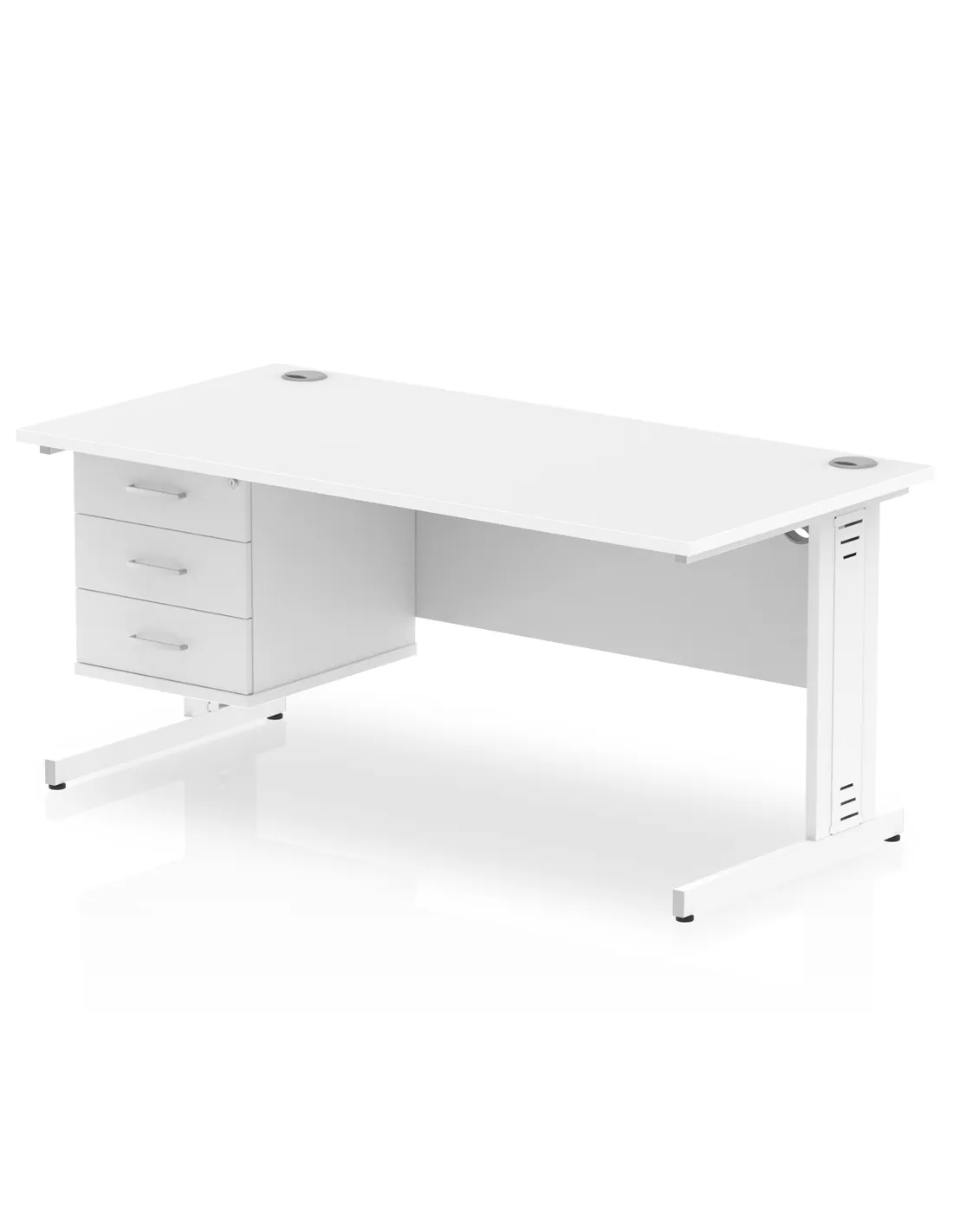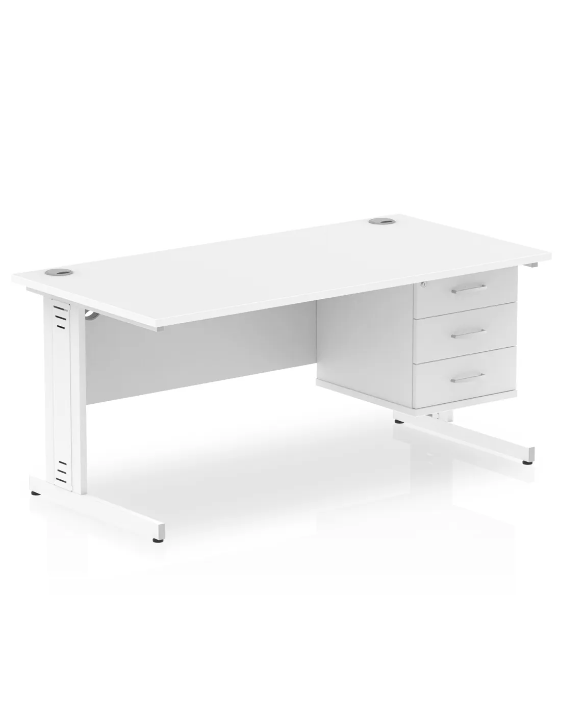Dynamic Impulse 1600 x 800mm Straight Office Desk White Top Cable Managed 1 x 3 Drawer Fixed Pedestal