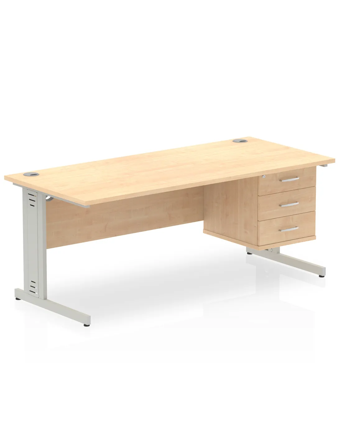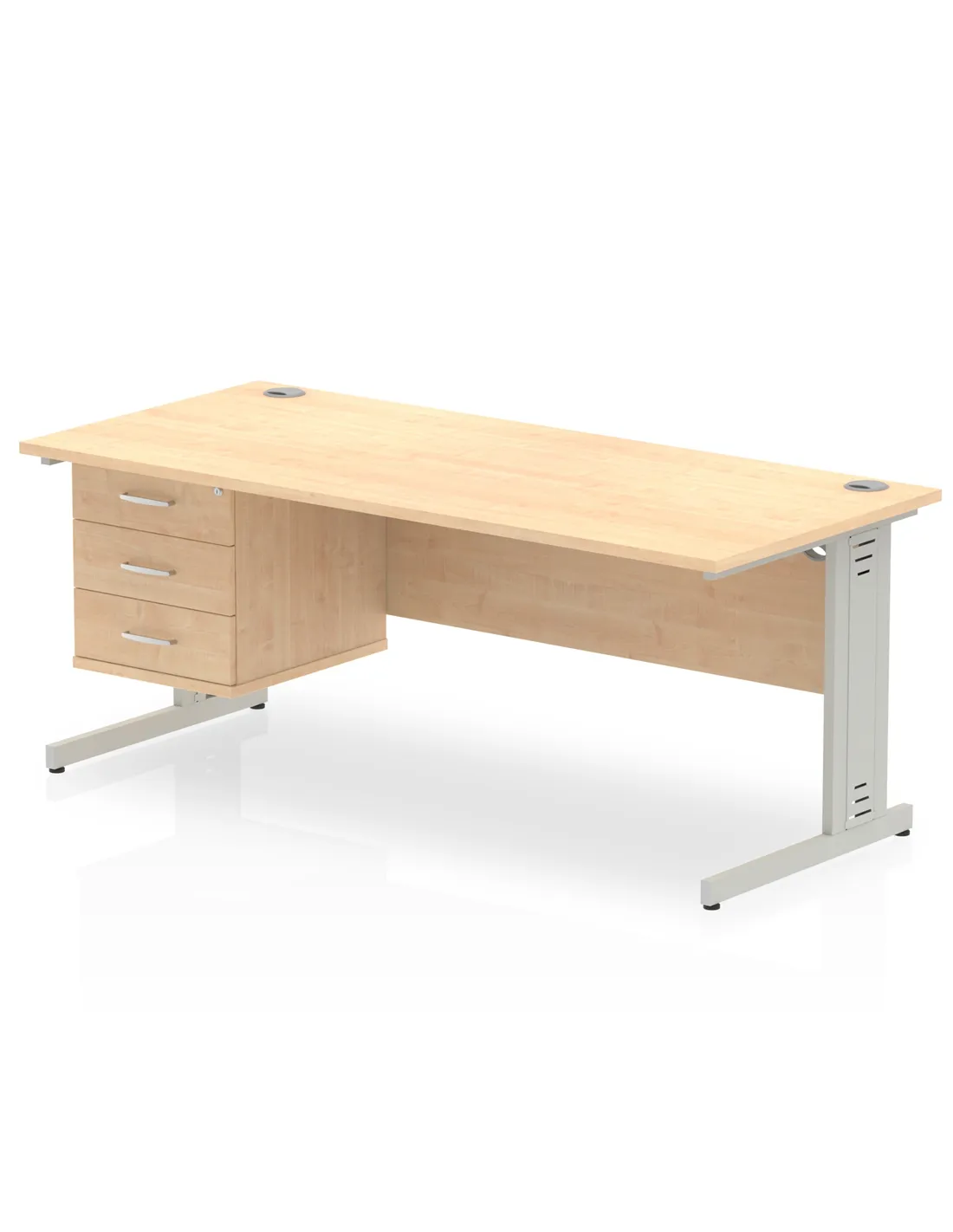 Dynamic Impulse 1800 x 800mm Straight Office Desk Maple Top Cable Managed 1 x 3 Drawer Fixed Pedestal
