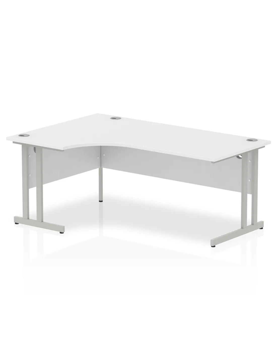 Dynamic Impulse 1800mm Left Crescent Office Desk White Top Silver Cantilever Leg